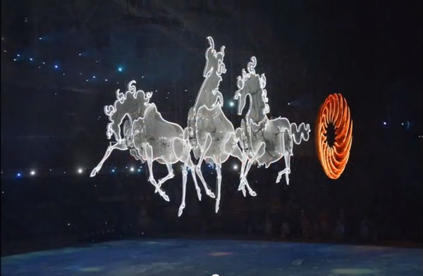 So tonight the 2014 Winter Olympic Games in Sochi, Russia, were officially opened, and I must say I though the ceremony was way cool. Those projected images on the arena floor were about the coolest thing ever. Some screen grabs: